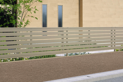 細かな横スリットデザインにより、外からの視線をやわらかく遮りながら、重くなりすぎない印象に仕上がるフェンスです。外構全体と調和しやすいデザインで、プライバシー性とデザイン性を両立したい方に選ばれています。高さやカラーのバリエーションも豊富です。